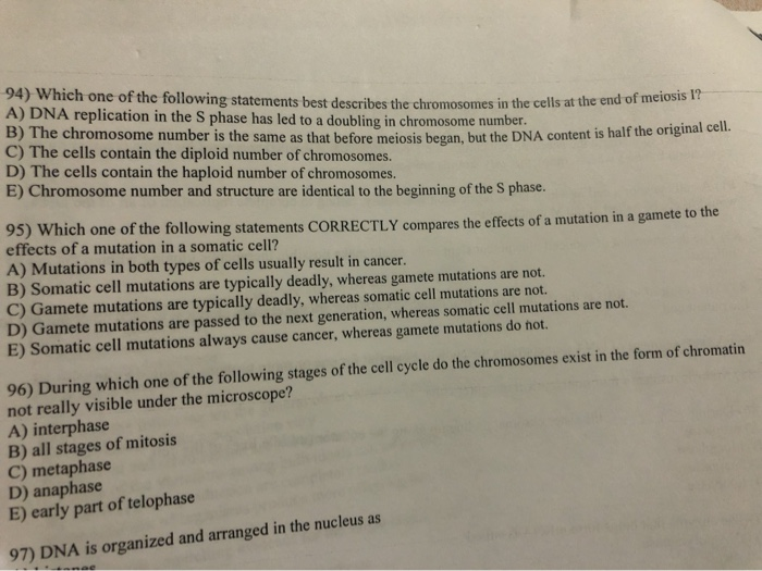 Solved Mosomes In The Cells At The End Of Meiosis 12 94 Chegg Com