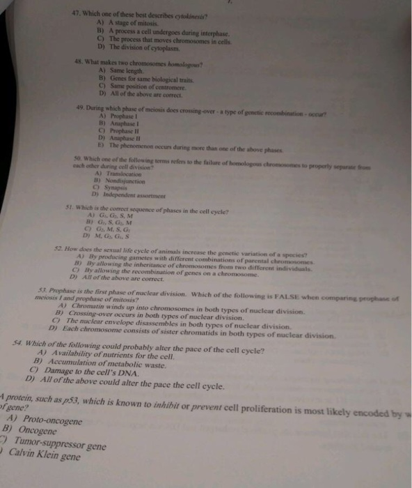 Solved 47 Which One Of These Best Describes Cytokinesis A Chegg Com